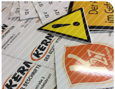 Wir fertigen Aufkleber im Druck- und Schneideverfahren,